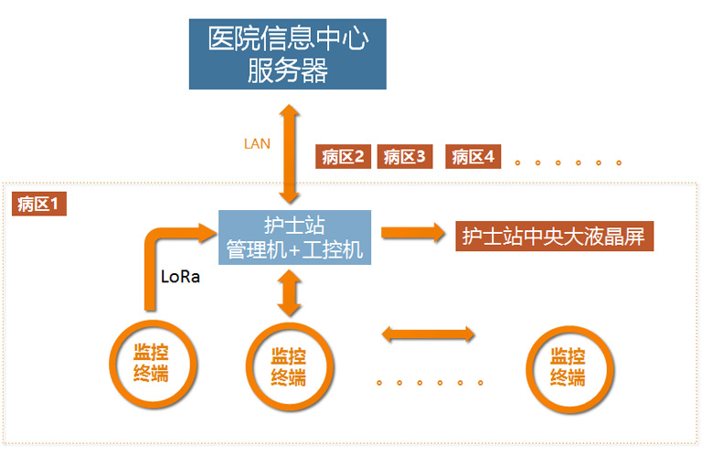 • 物聯網智慧病房的主要優勢在哪些方面有所表現 物聯網智慧病房護理系統包括管理主機,醫療擴展,物聯網終端,門擴展,床頭擴展,走廊顯示屏,浴